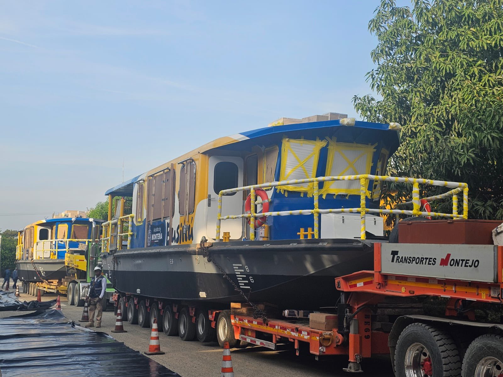 Las dos embarcaciones que integrarán el sistema de transporte público fluvial Businú comenzaron su recorrido terrestre desde los astilleros de Cotecmar en Cartagena hacia la capital de Córdoba, informó la administración municipal.