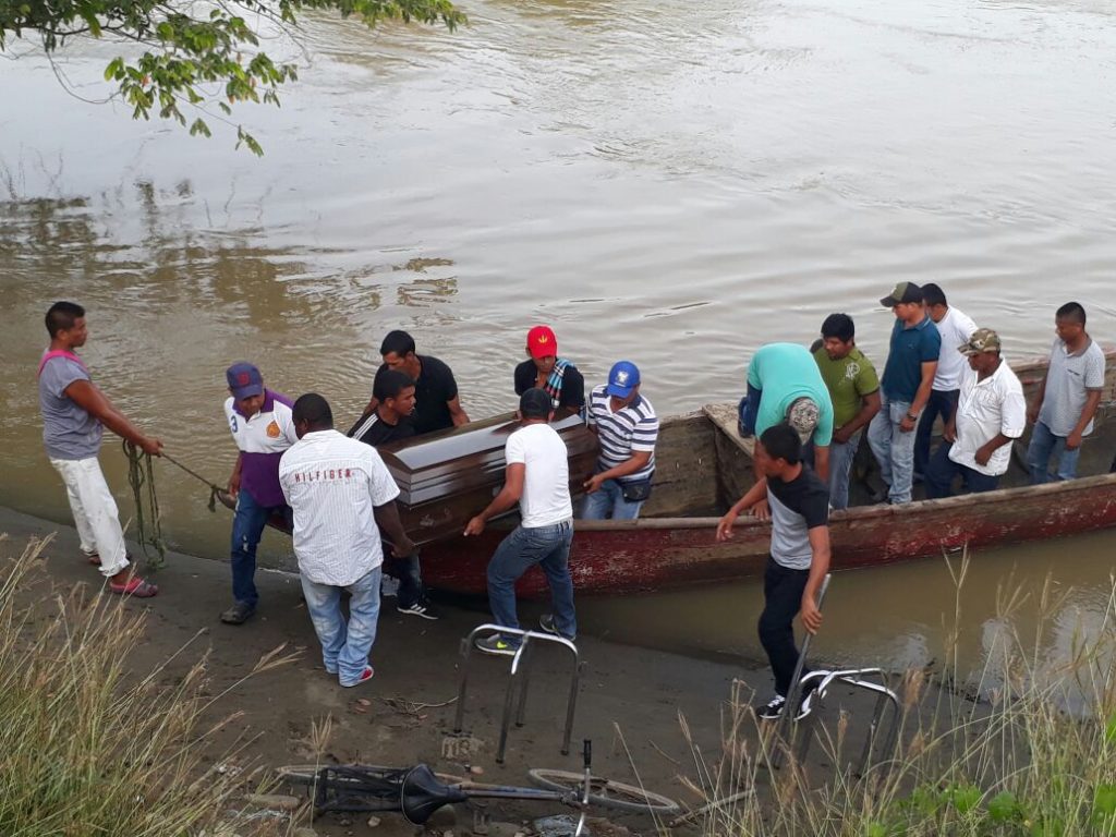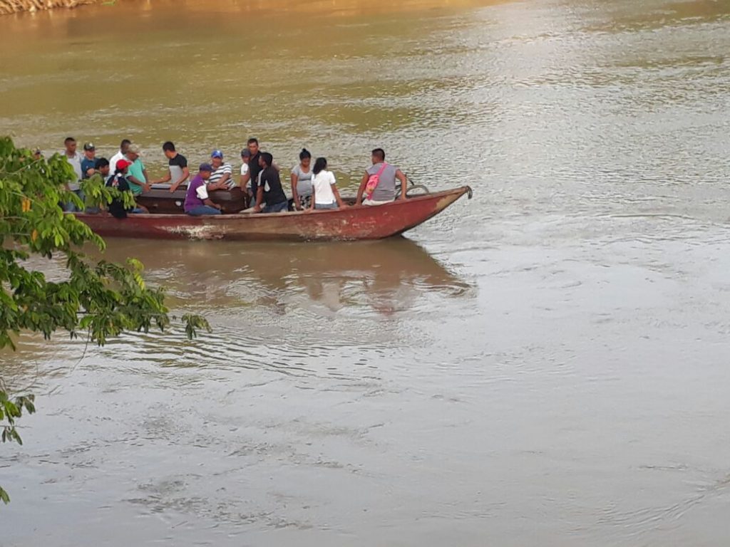 La singular embarcación permitió que el cadáver fuera trasladado desde la margen izquierda , sobre el río Sinú.