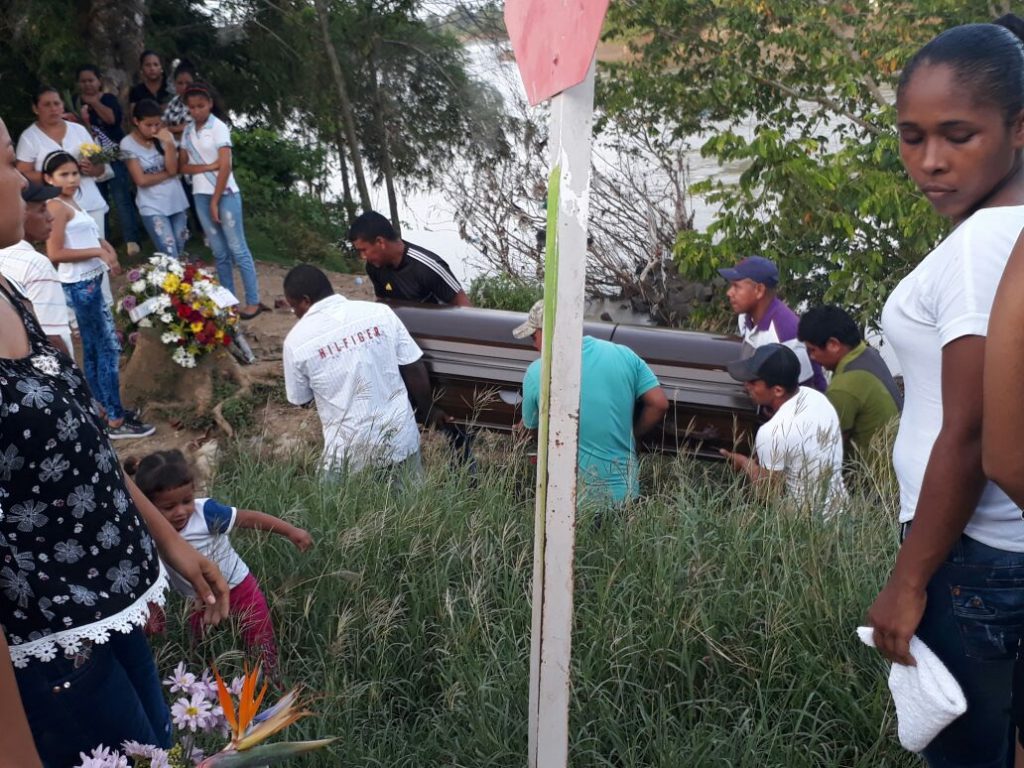 Luego de diez minutos de travesía, el féretro llegó al otro lado, en la margen derecha, donde otros dolientes lo esperaban, para culminar su llegada al campo santo.