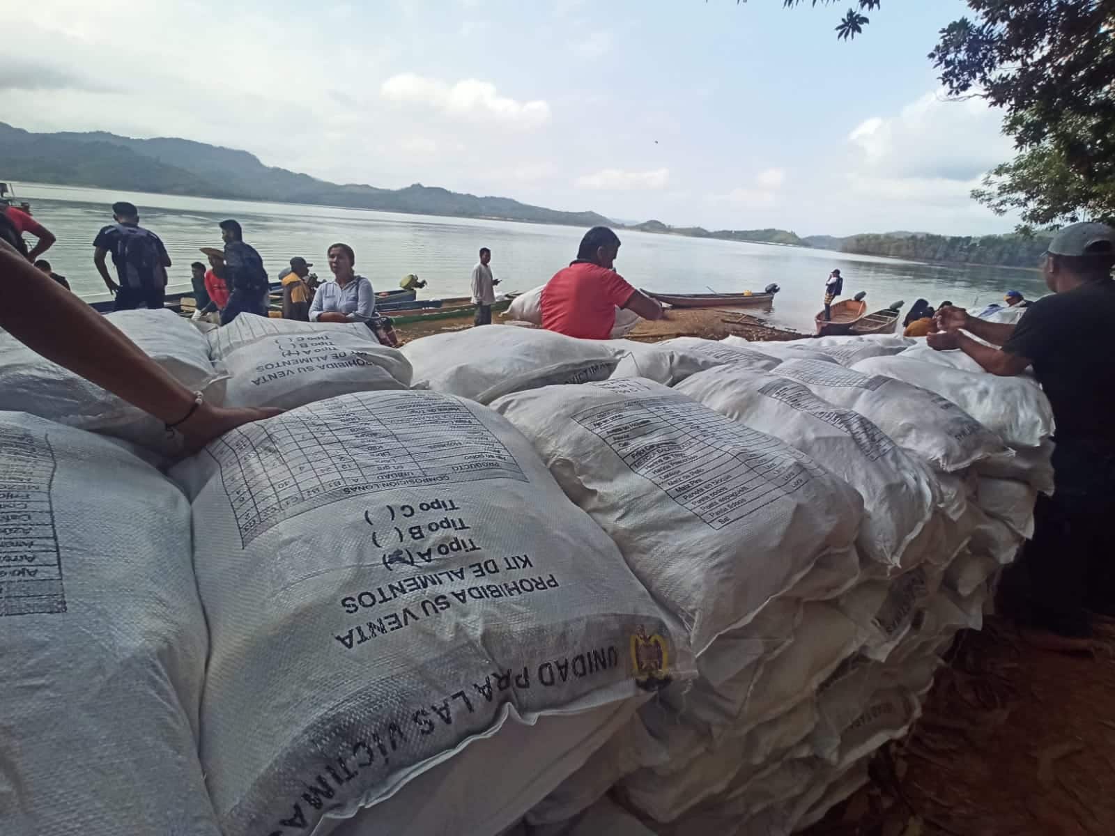 La entrega de las ayudas se realizó en ocho canoas y duró más de cuatro horas en lancha desde Puerto Frasquillo hacia el sur del río Sinú en el Nudo del Paramillo.