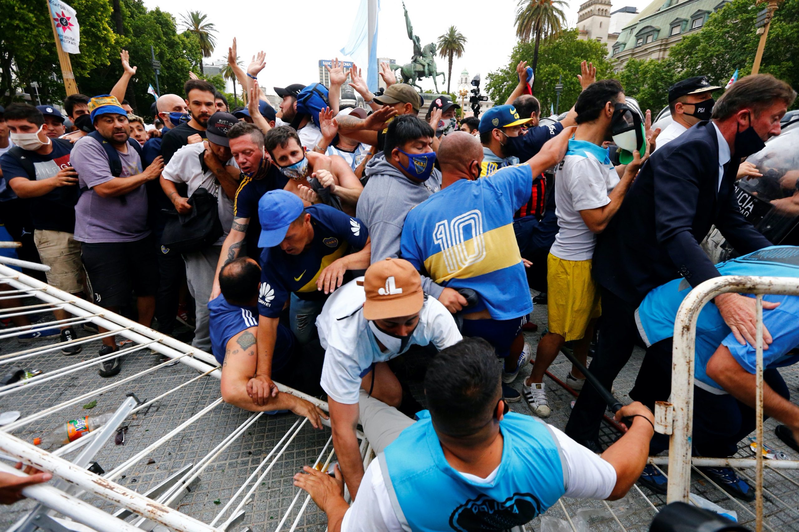 Sin embargo, la tensión que se vivió fuera de la Casa Rosada, al conocer que no había mucho tiempo para despedirse del ’10’ generó enfrentamientos y riñas en las afueras del recinto, lo cual hizo que las puertas del edificio estuvieran cerradas por un período de tiempo ante la violencia presente en las cercanías del velorio.