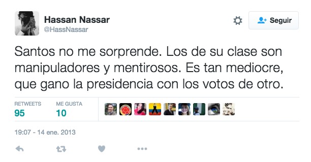 Trinos de Hassan Nassar hace algunos años, fueron recopilados por Las2Orillas.