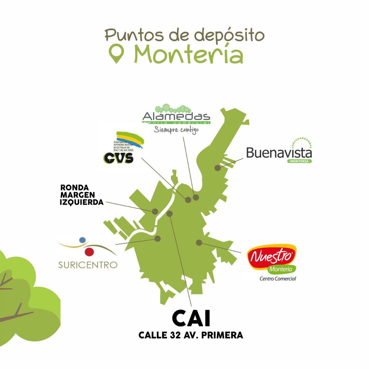 Los puntos de recolección en la zona urbana se ubicarán en los Centros Comerciales Alamedas, Buenavista, Nuestro, Suricentro, Margen Izquierda, CVS, y CAI de la Calle 32 con Avenida Primera.