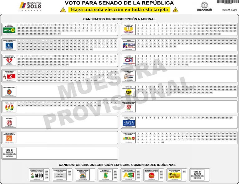 Ya se encuentra publicado el Tarjetón Provisional que elaboró la Registraduría Nacional del Estado Civil, para las elecciones parlamentarias de 2018.