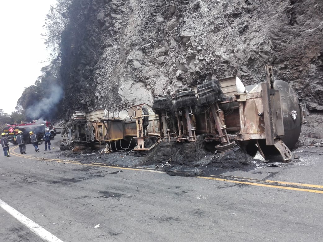 Este lamentable hecho ocurrió cuando el camión cisterna, cargado con 11 mil galones de gasolina y 120 de ACPM, chocó con un separador y se volcó cuando cruzaba por la carretera Manizales – Fresno.