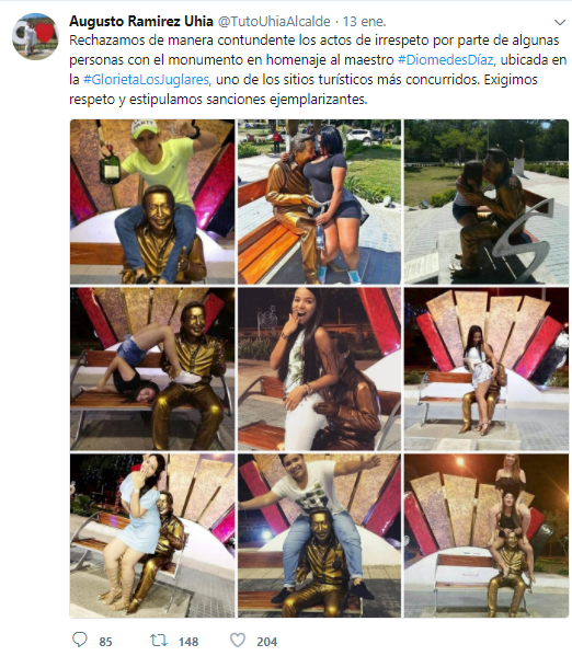 El alcalde de la ciudad, Augusto Ramírez, manifestó que, “exigimos respeto y estipularemos sanciones ejemplarizantes”, asimismo, el hijo de Diomedes, Rafael Santos Díaz, le pidió a los fans de su padre que cuiden la escultura para que todos puedan tomarse fotos y videos, guardando su recuerdo.