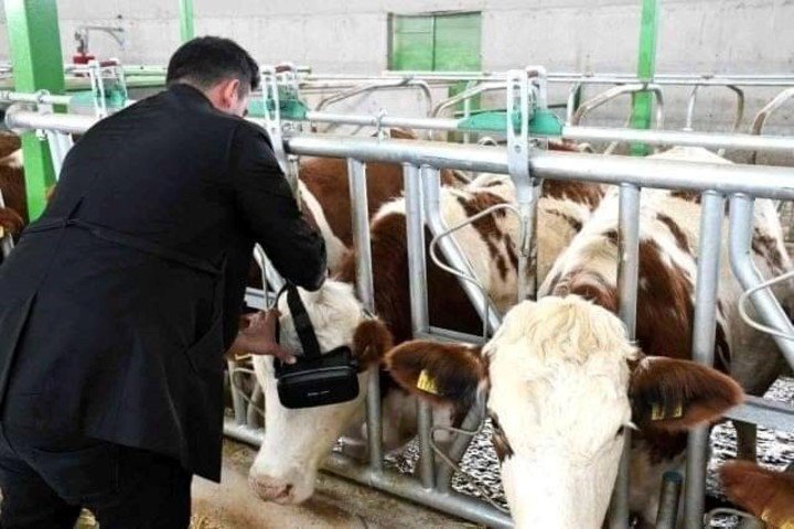 Izzet Koçak, un ganadero de Turquía, puso las gafas a las vacas en las que se exponía un extenso prado soleado y relajado, un mabiente completamente distinto al que por esta época se ve en la región. Las imágenes estimularon a los animales e hizo que aumentaran su productividad de 22 a 27 litros de leche al día.