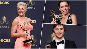 Una reducida audiencia de estrellas acudió a la primera gala presencial en dos años de estos premios, los Óscar de la televisión, que se celebraron en un auditorio parcialmente abierto debido a la pandemia.