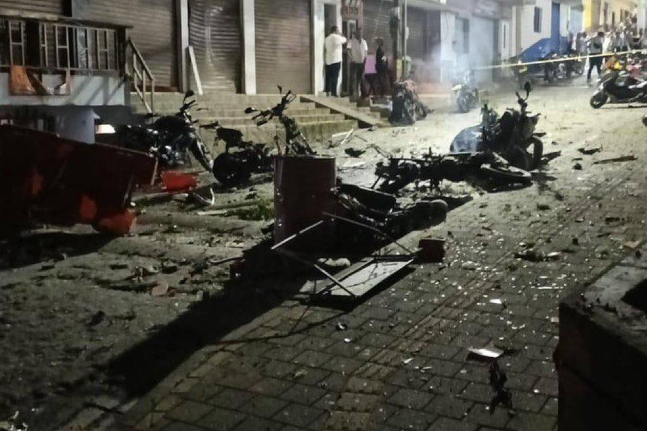 Las imágenes difundidas por las autoridades muestran una escena de destrucción en el sector donde estalló el artefacto: escombros, estructuras dañadas y señales del incendio provocado por la explosión en pleno casco urbano del municipio.