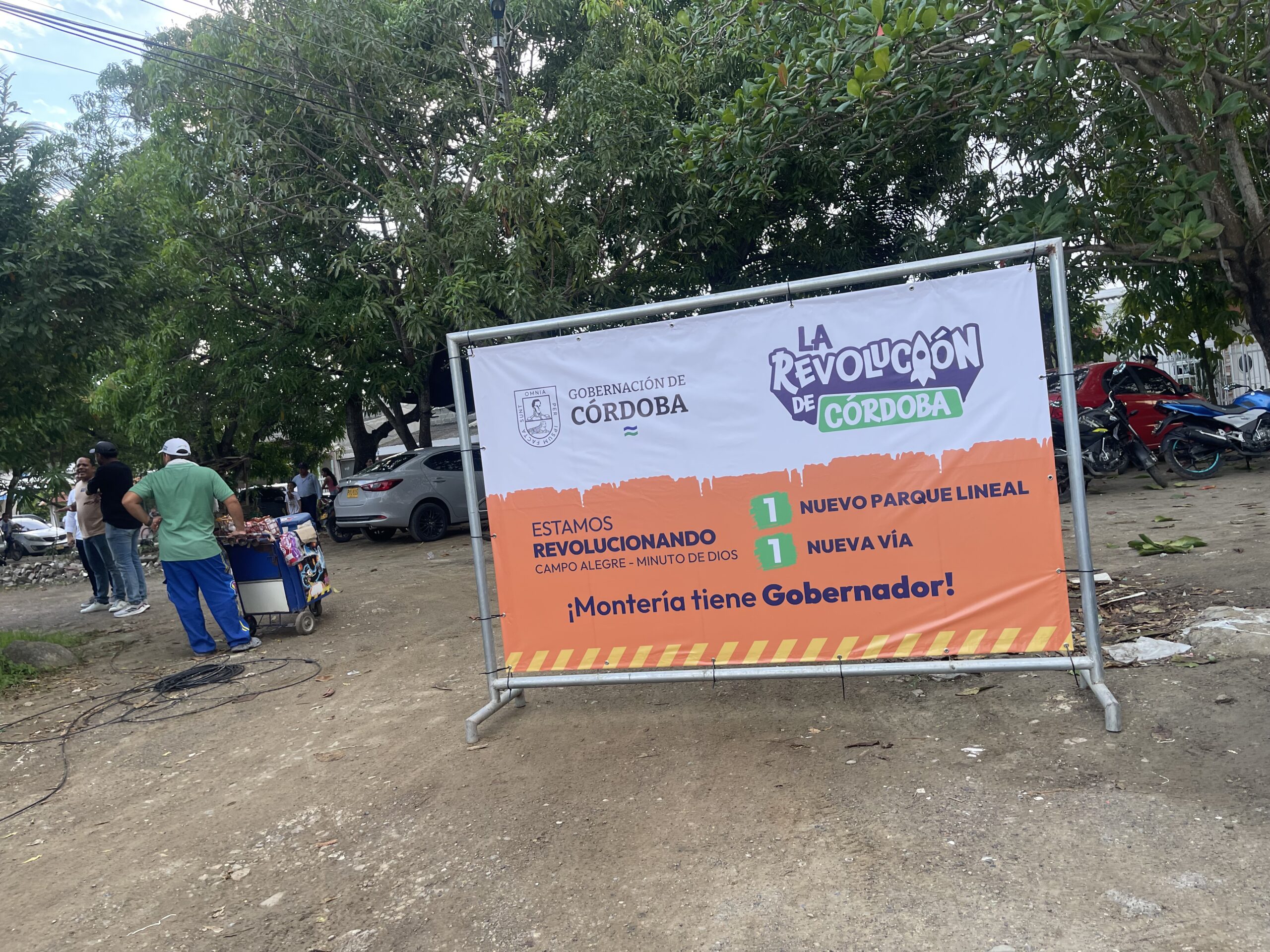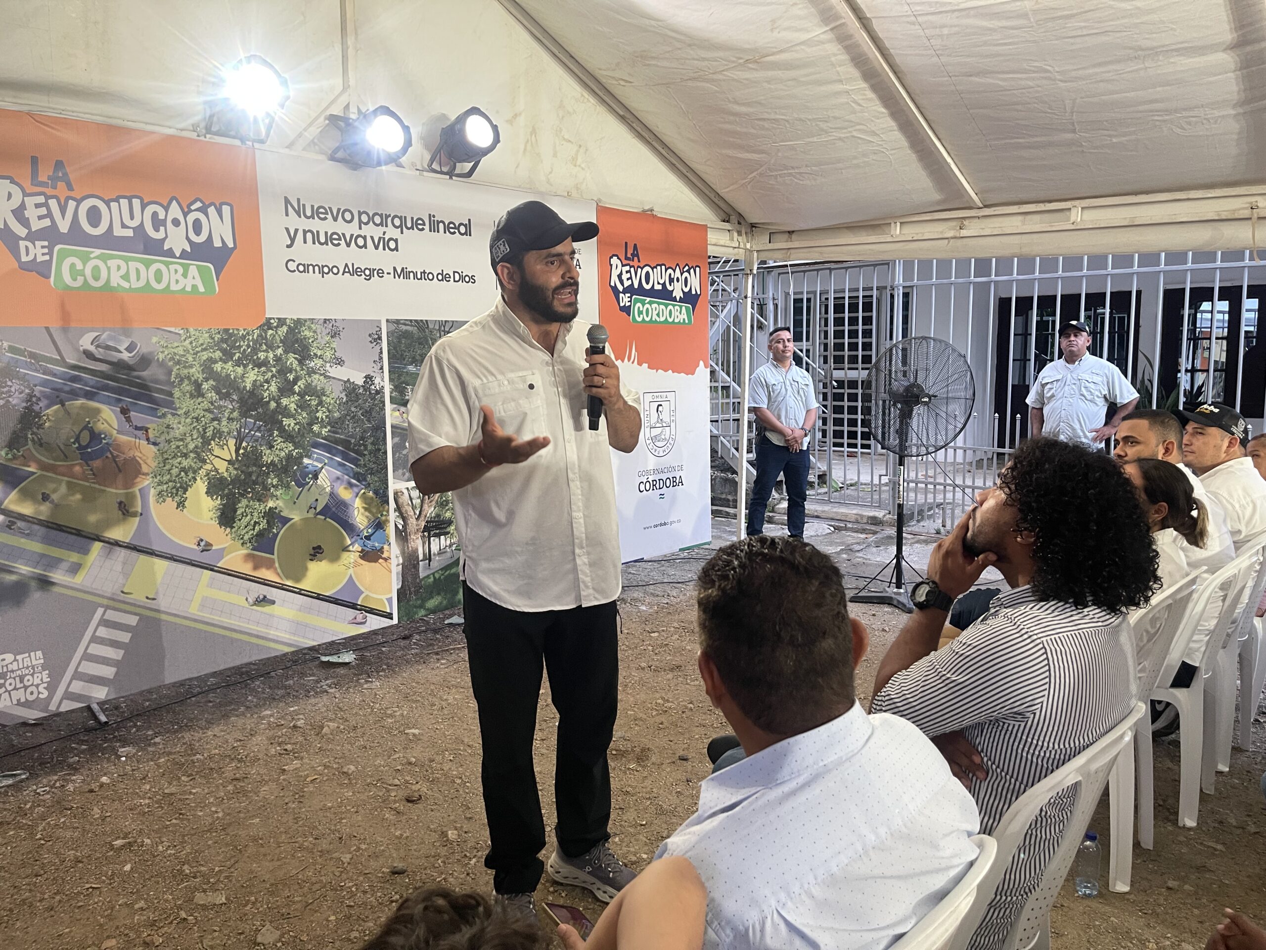 El gobernador de Córdoba, Erasmo Zuleta, anunció el inicio de una importante obra en los barrios Minuto de Dios y Campo Alegre de la margen izquierda de Montería, que incluye casi un kilómetro de pavimento y más de 9.500 metros lineales de parque lineal con una inversión de 10.500 millones de pesos.