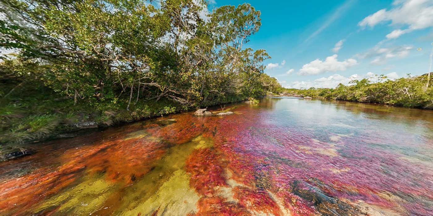 Caño Cristales, también llamado el “río de los cinco colores” por las vivas tonalidades rojo, amarillo, violeta, azul y rosado que le dan las algas que crecen en su lecho, es una maravilla natural con un enorme potencial turístico situado en la región selvática de La Macarena, municipio del departamento del Meta.