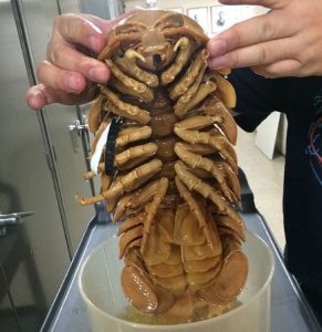 La criatura recibió el nombre de ‘cucaracha gigante’ por parte de los expertos que la encontraron, y se sabe que corresponde al género ‘Bathynomus’, animales de cuerpos planos y duros que viven en aguas profundas. Este animal mide unos 33 cm de la cabeza a la cola.