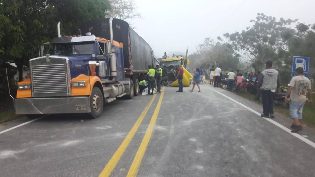 Los dos vehículos de carga chocaron violentamente cuando transitaban a la altura de la vereda La Asamblea y en el sitio del siniestro perdió la vida el referido transportista.