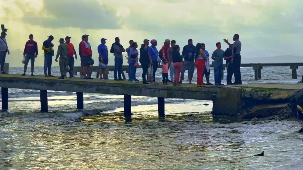Las fuertes olas y el sol intentan, dice el periodista, cobrar por mandato del Darién la vida de aquellos que decidieron atravesarla en el pasado. A lo lejos, en medio de un mar abierto, se ve la tupida jungla. Los recuerdos alimentan a la angustia.