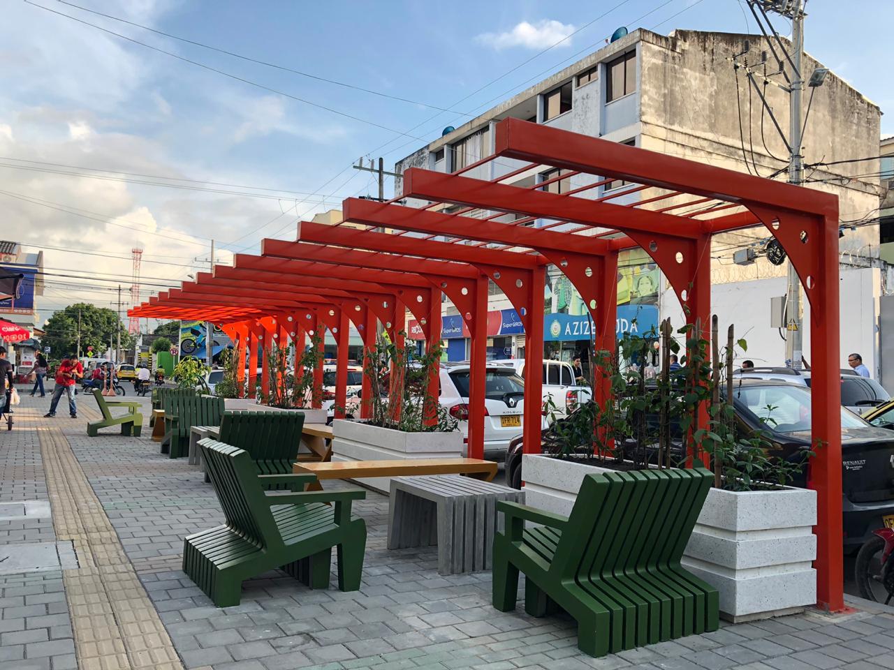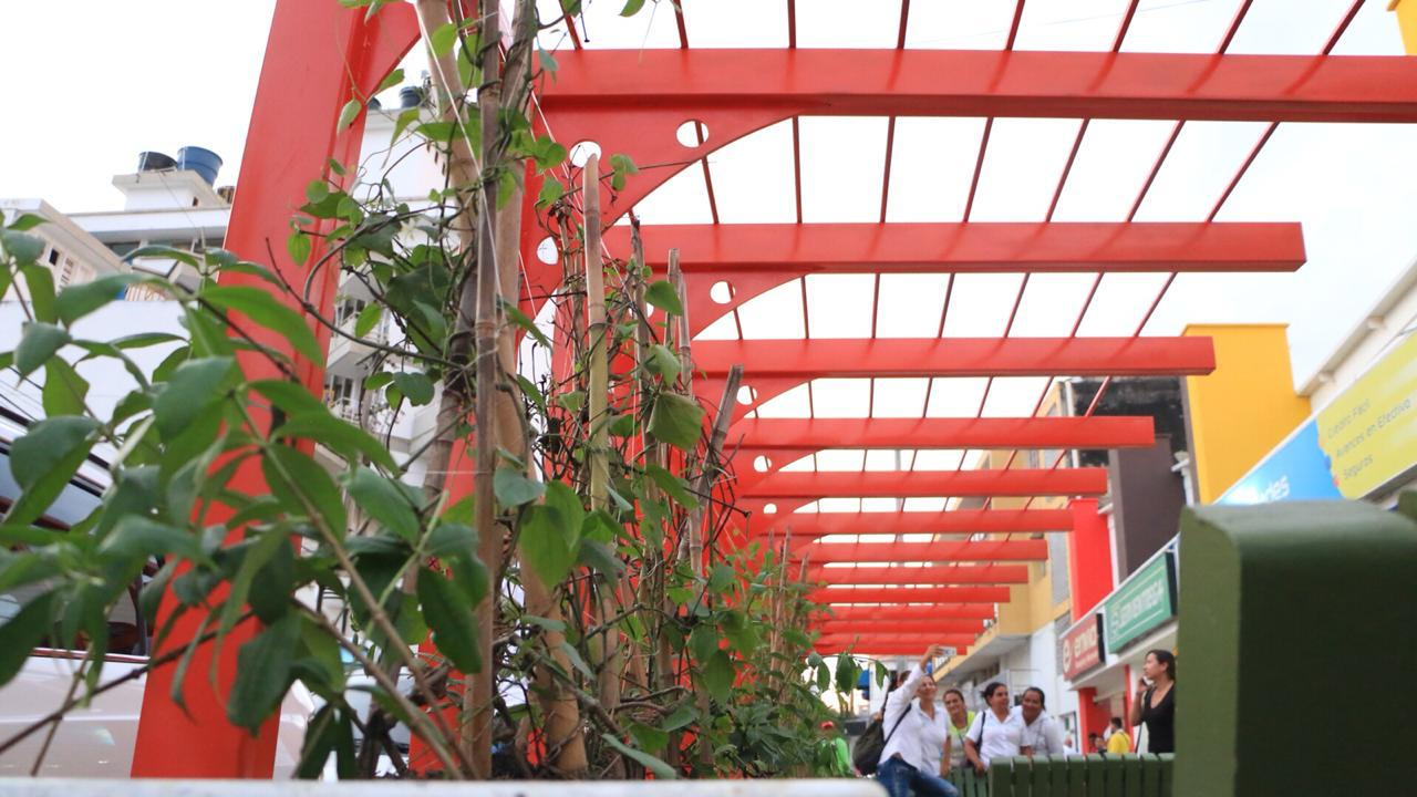 La sala urbana tiene unas enredaderas que, una vez crezcan, brindarán sombra y aire fresco a quienes hagan uso de ella.