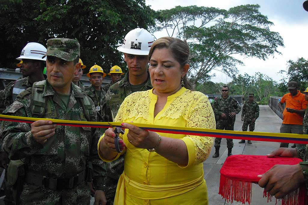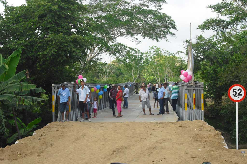 “Este puente militar fue construido por 53 soldados miembros del Batallón de Ingenieros de Operaciones Especiales de Tolemaida, en un tiempo récord, menos de 20 días, puede soportar hasta 52 toneladas de carga, por lo que puede transitar cualquier vehículo” señaló el coronel Figueredo.