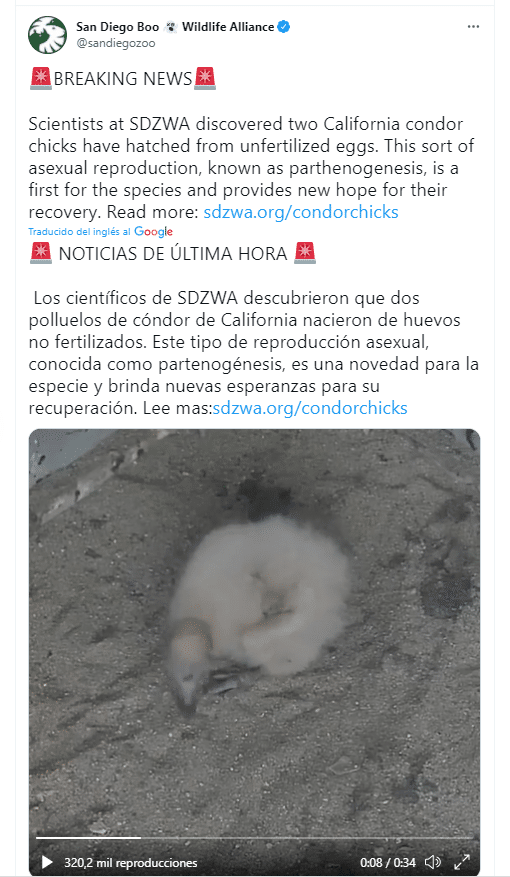 Cabe decir que, estos son los primeros casos de reproducción asexual en la especie de cóndor de California.