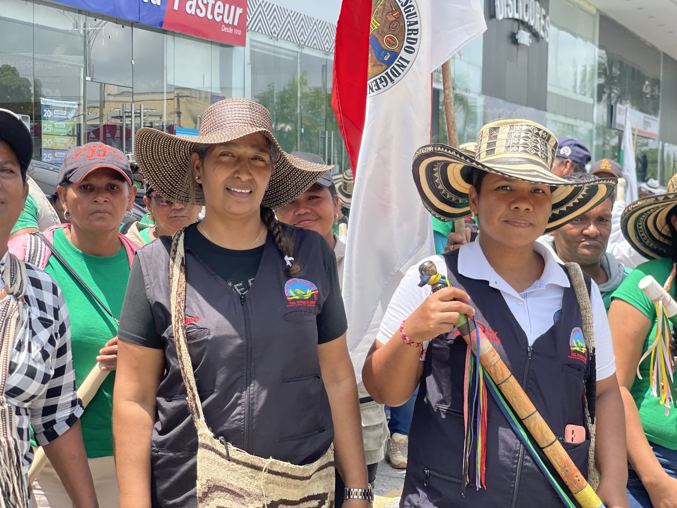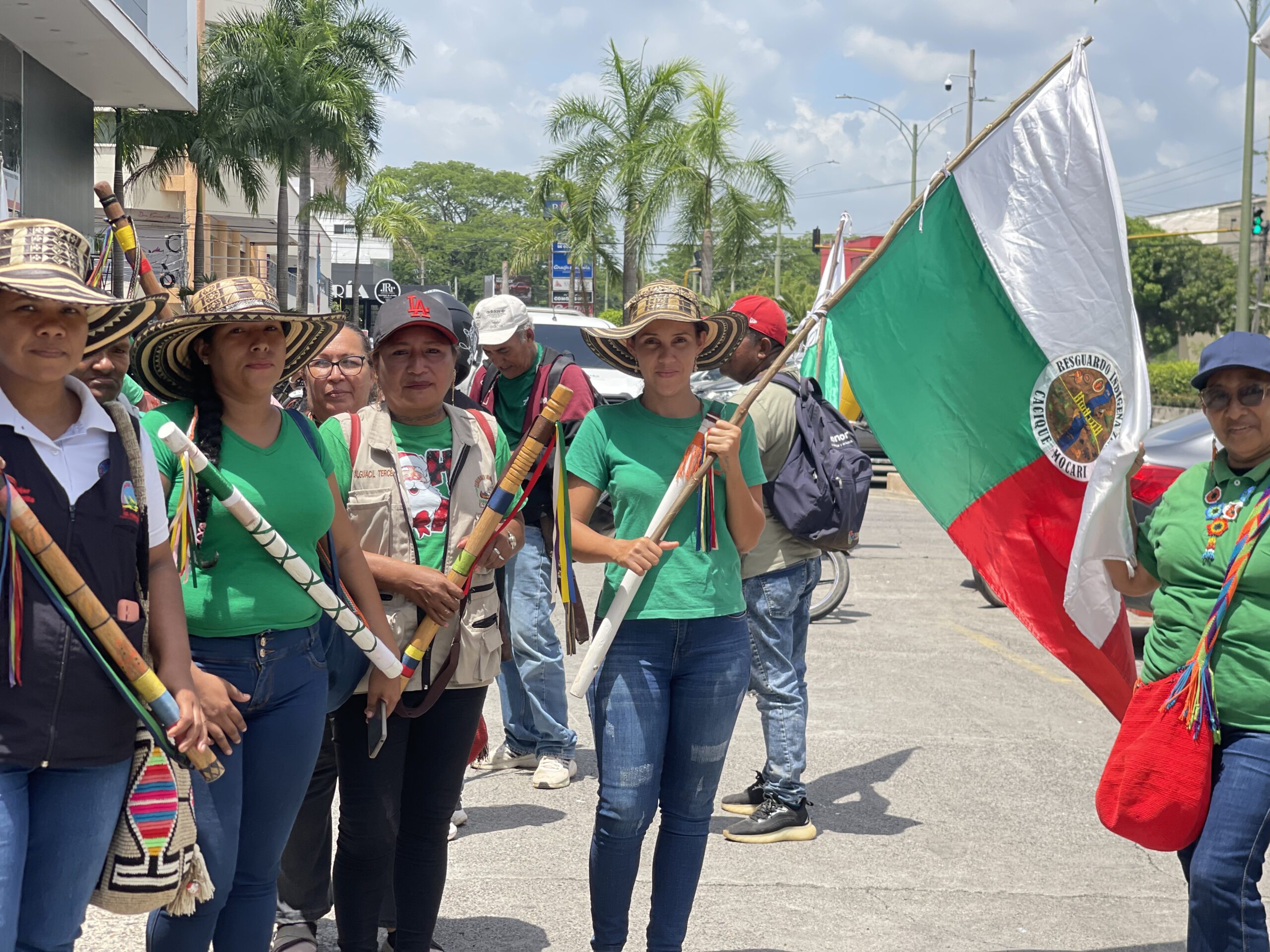 Representantes del Resguardo Indígena Zenú Cacique Mocarí se movilizaron hoy frente a las instalaciones de la Agencia Nacional de Tierras en Montería.