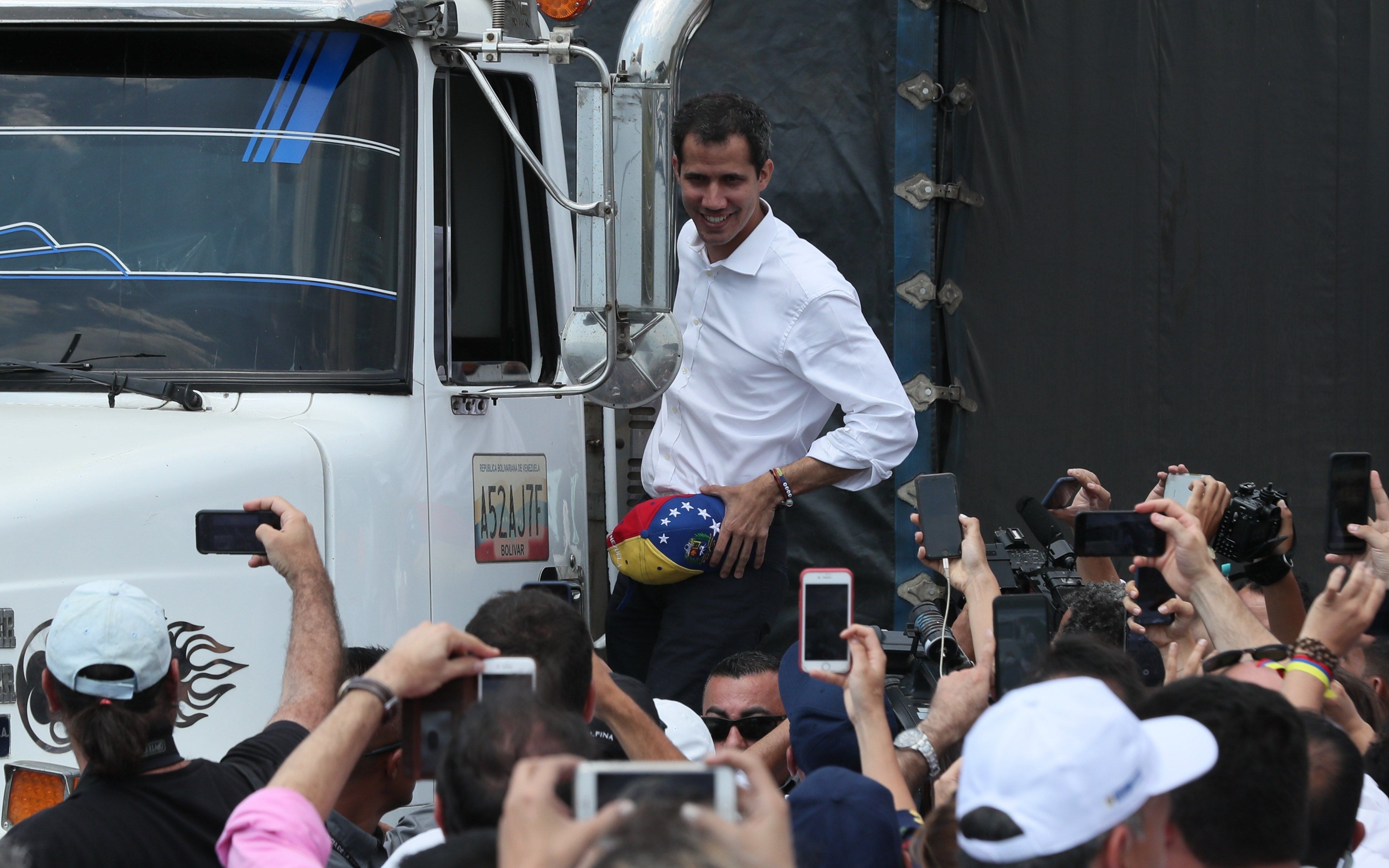 Venezuela. Pasadas las 11:00 a.m. de este 23 de febrero, el presidente interino de Venezuela, Juan Guaidó anunció la entrada a ese país del primer cargamento de ayuda humanitaria por la frontera con Brasil.