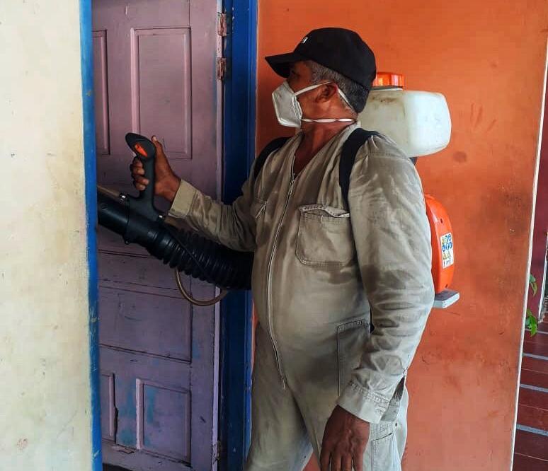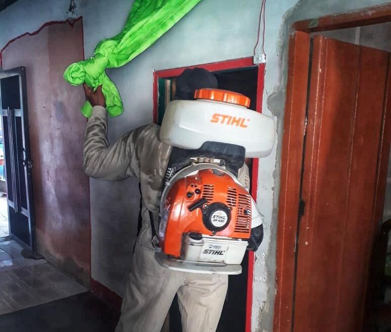 Las actividades de fumigación están acompañadas con la entrega de pruebas rápidas para malaria y Dimilin larvicida para los reservorios de agua.