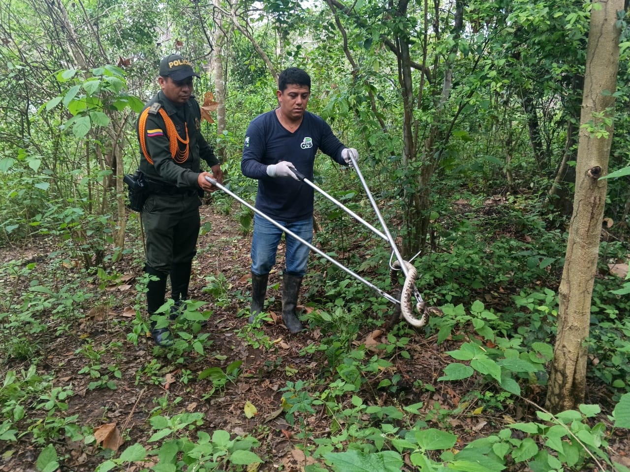 Una residente del barrio Los Colores encontró la serpiente venenosa dentro de su casa y alertó inmediatamente a las autoridades. La Policía Ambiental y Ecológica respondió al llamado, capturó el reptil de forma segura y coordinó con la Corporación Autónoma Regional de los Valles del Sinú y del San Jorge su liberación en una zona apropiada.