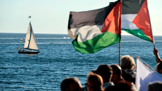 El posicionamiento marítimo de barcos israelíes comenzó después de que las embarcaciones navegaran 150 millas náuticas en zona de alto riesgo. La interceptación confirma el patrón de Israel de impedir la llegada de asistencia humanitaria a Gaza.