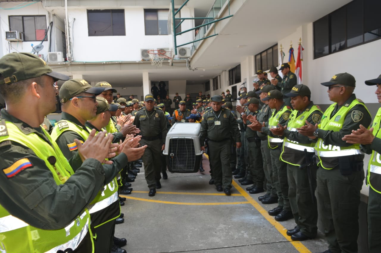 Montería. Con un pasillo de honor fue despedido León, el perro de la guardia de prevención que sirvió durante 15 años a la Policía Metropolitana de Montería y que falleció en las últimas horas a causa de un cáncer.