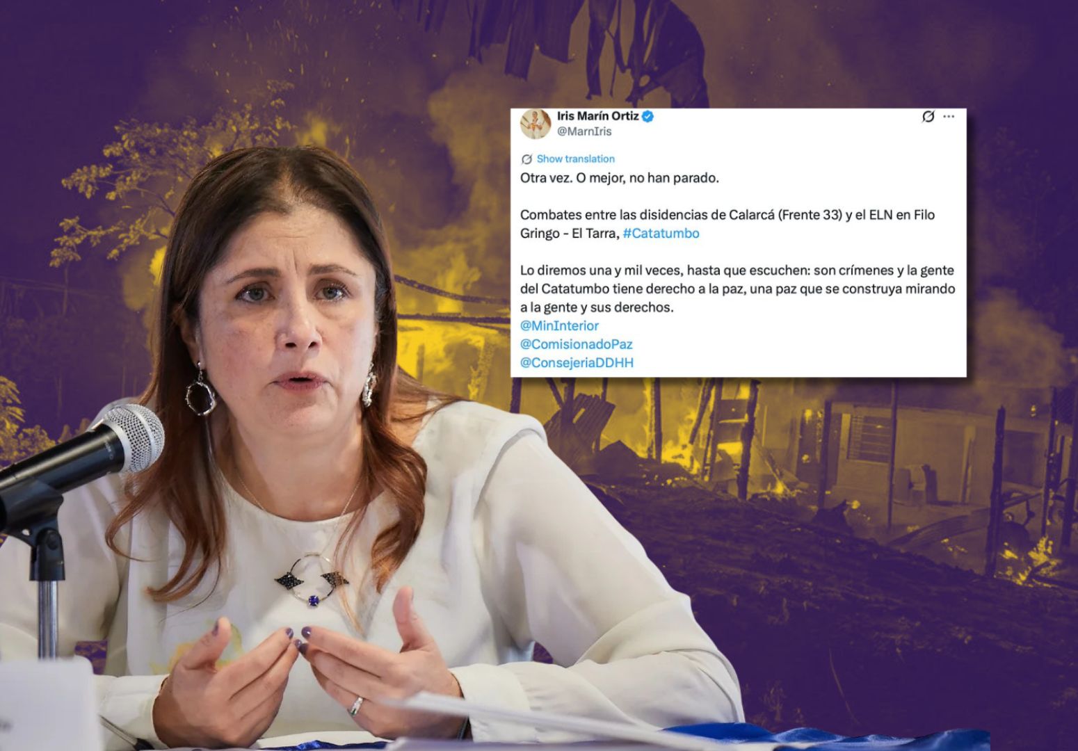 La defensora Iris Marín alertó por nuevos combates entre el Frente 33 y el ELN en El Tarra, Catatumbo, y afirmó que la violencia no ha cesado.