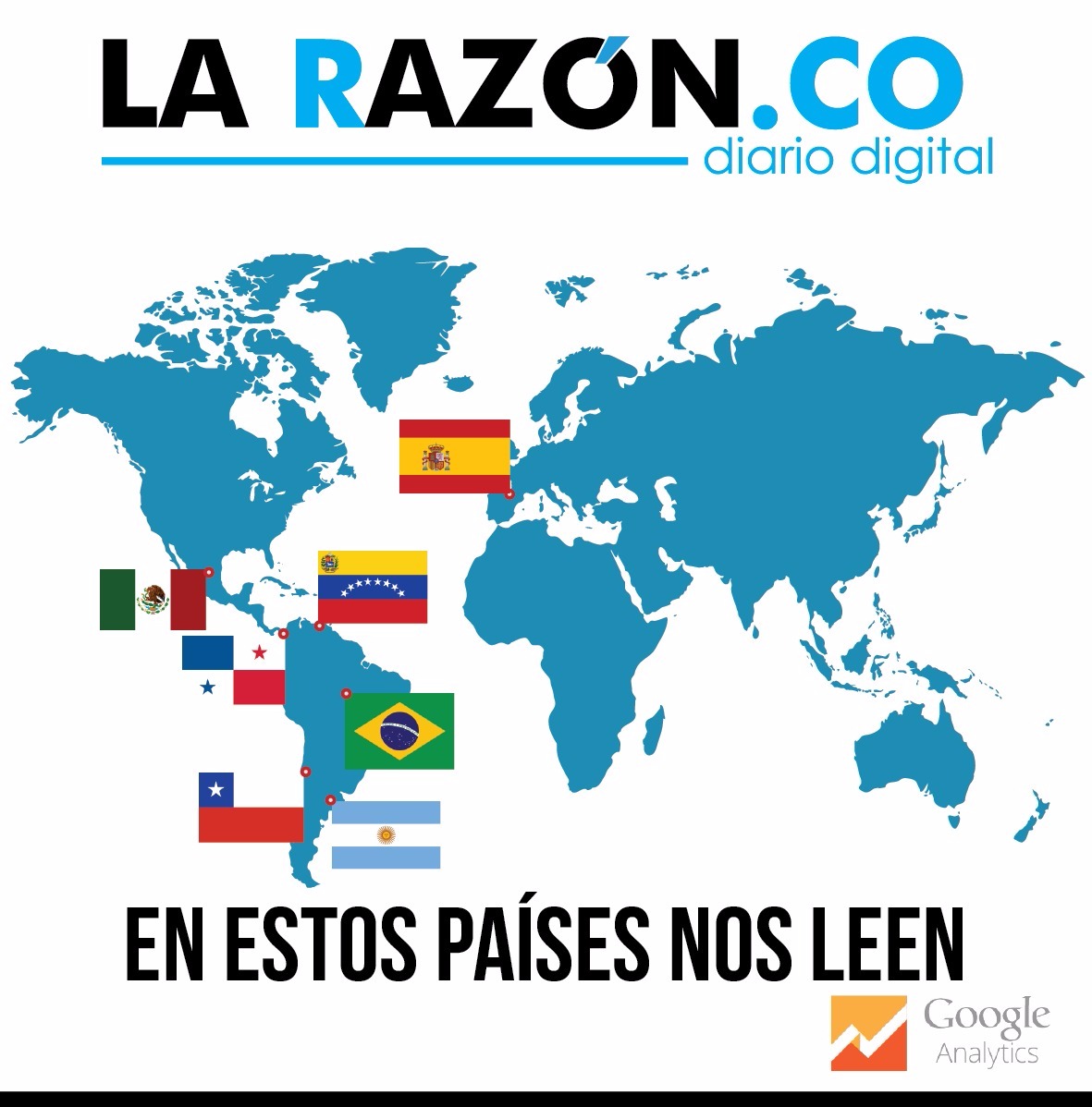 Según el sistema de analítica de Google, LA RAZÓN.CO es vista en las principales ciudades de Colombia cómo Montería, Bogotá, Barranquilla, Sincelejo, Medellín, Valledupar, Cali y Bucaramanga, así como de países como Estados Unidos, España, Argentina, Venezuela, México, Brasil y Chile. Hoy por hoy cuenta con un promedio de 200 mil visitas mensuales.
