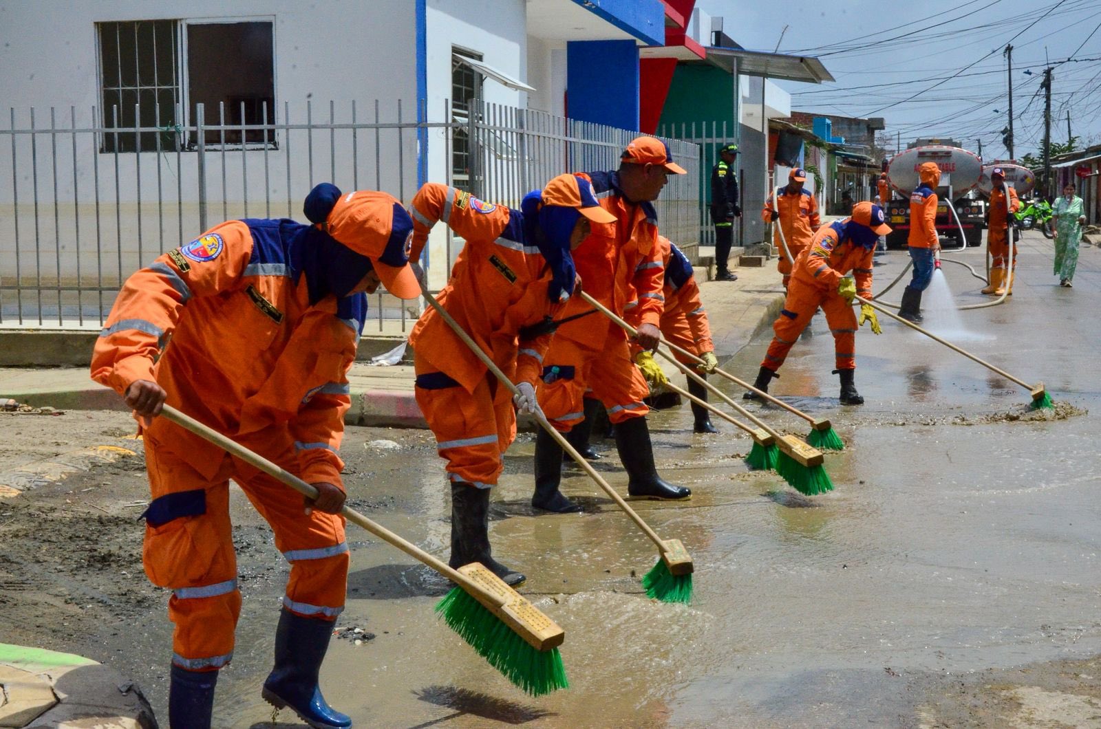 La entidad dispuso de cuatro carrotanques que operan con agua a presión para remover el lodo y los residuos acumulados en las calles tras el paso del agua.