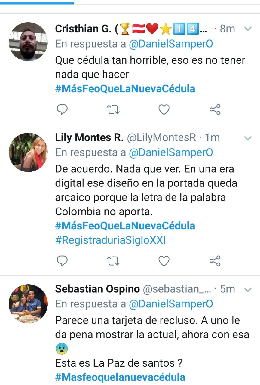 Aunque no se trata del diseño definitivo, aclaró la Registraduría, algunos ciudadanos rechazaron el diseño con el hashtag #MásFeoQueLaNuevaCédula.