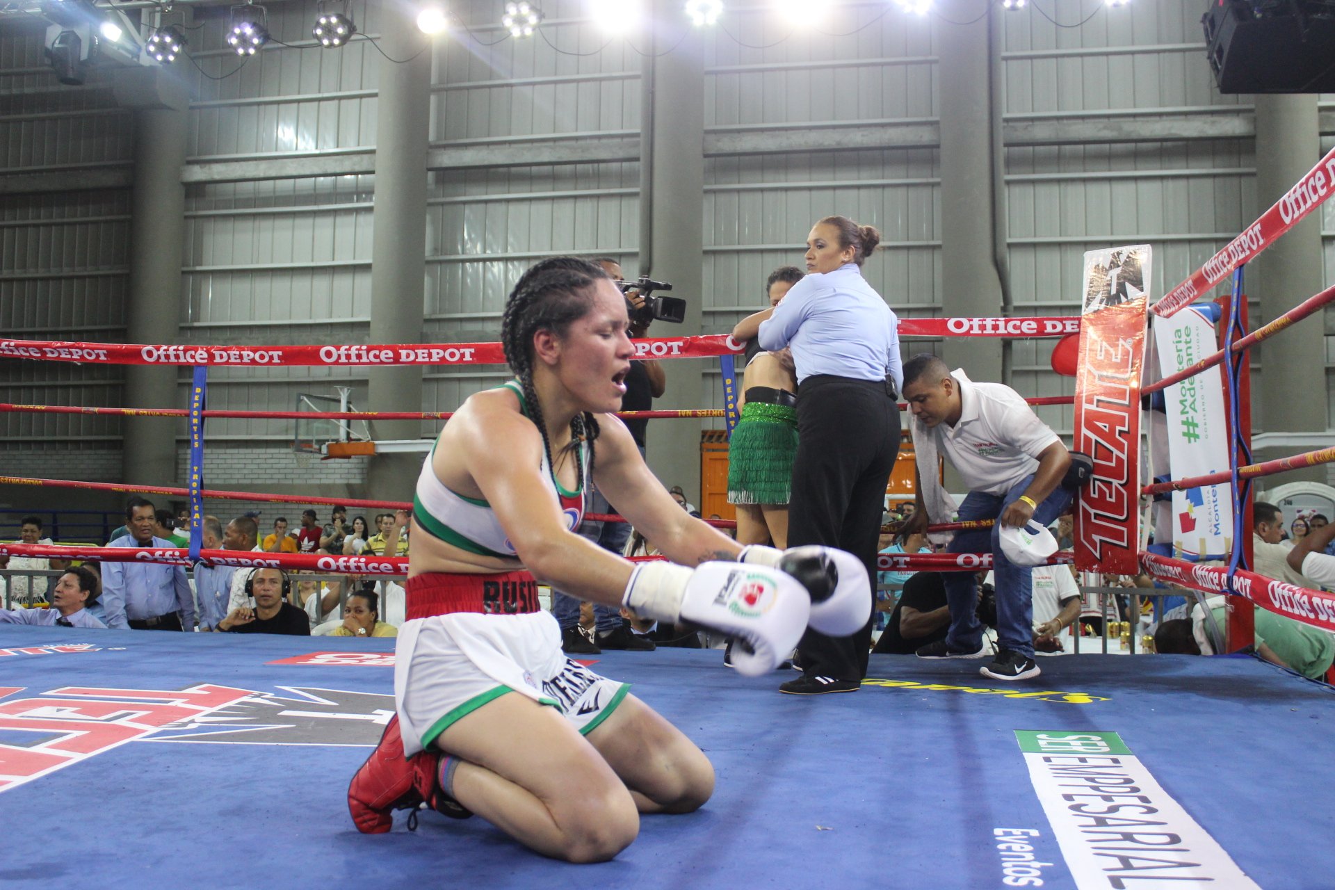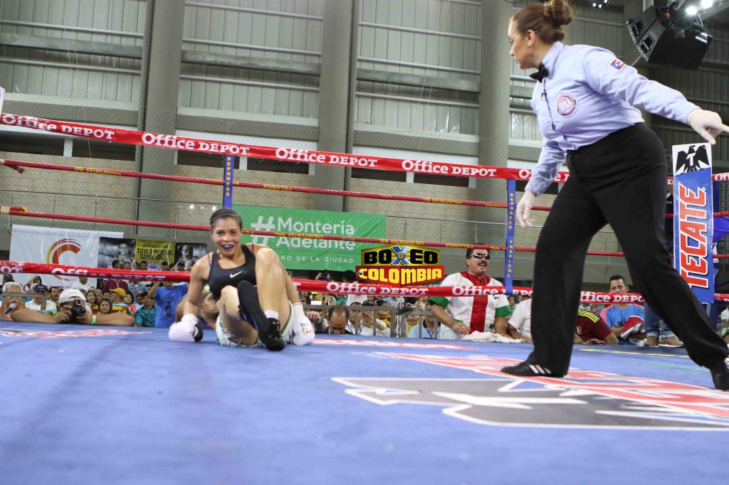 En el Coliseo Miguel ‘Happy’ Lora, de Montería, Palmera de 36 años, no pudo retener su título y en el quinto asalto se fue a la lona tras una andanada de golpes de la mexicana Yazmín Rivas.
