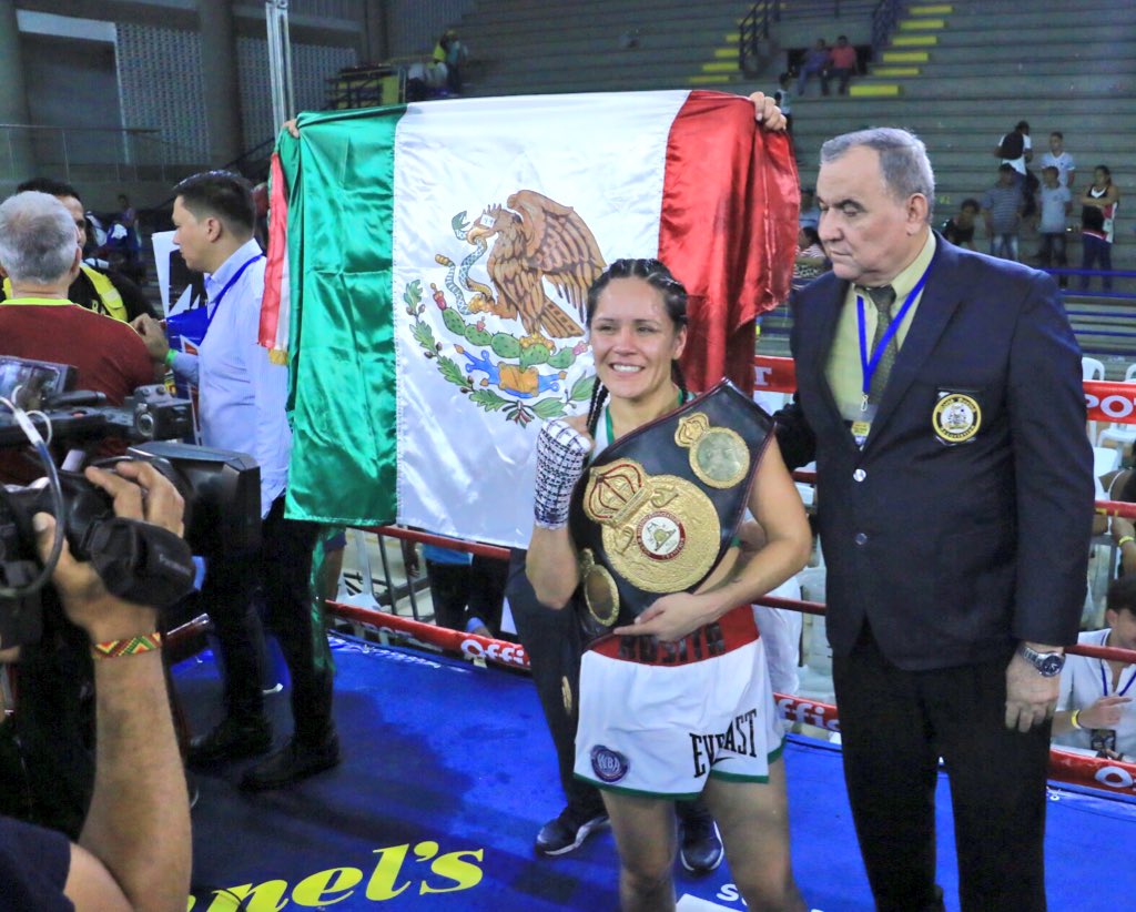 En el quinto round la mexicana de 30 años, demostró toda su preparación e hizo un combate formidable, poniendo a Palmera contra las cuerdas, la referi detuvo el combate y el título para la colombiana se esfumó.