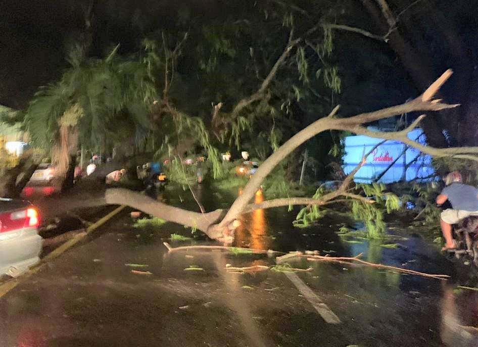 Los vientos huracanados derribaron varios árboles sobre la vía que une a Montería con Cereté en inmediaciones de la Clínica IMAT, además de postes de energía y tendido eléctrico.