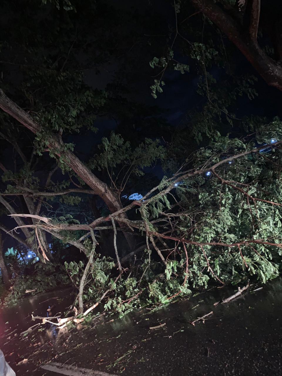 Tres vehículos que se movilizaban por esa zona de la ciudad resultaron averiados por la caída de ramas, no se reportaron personas heridas.