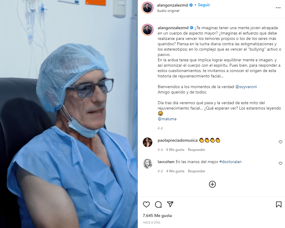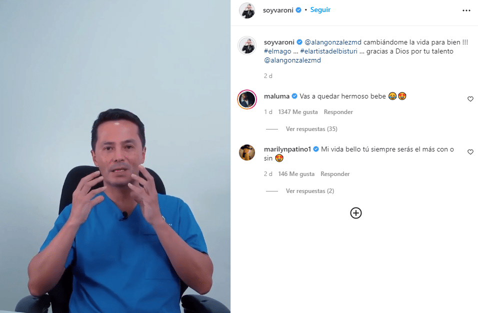 Así mismo, su procedimiento estuvo a cargo del reconocido cirujano Alan González, quien también estuvo muy activo en su cuenta de Instagram publicando todo el proceso de Varoni.