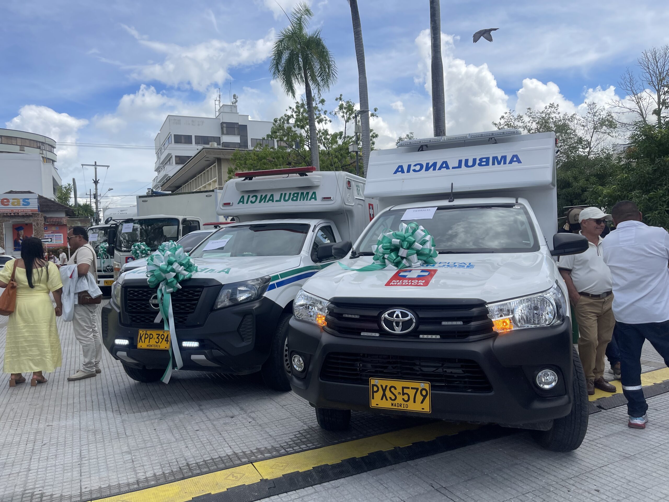 Los municipios beneficiados con estos vehículos en Córdoba son: Sahagún, Los Córdobas, La Apartada, San Antero, Buenavista, Puerto Escondido, Cotorra, Pueblo Nuevo, Puerto Libertador, Planeta Rica, Tierralta y San José de Tolú Viejo, Santiago de Tolú, ambos muncipios de Sucre. Las unidades incluyen ambulancias básicas, ambulancias TAP, camionetas y una unidad médico-ontológica.