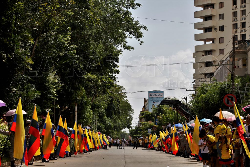 500 banderas de Colombia estuvieron dispuestas a lo largo de la Av. Primera. Los monterianos acudieron en familia a disfrutar del Desfile y llenaron la avenida principal de la capital, algunos asistieron luciendo la camiseta de la Selección Colombia.