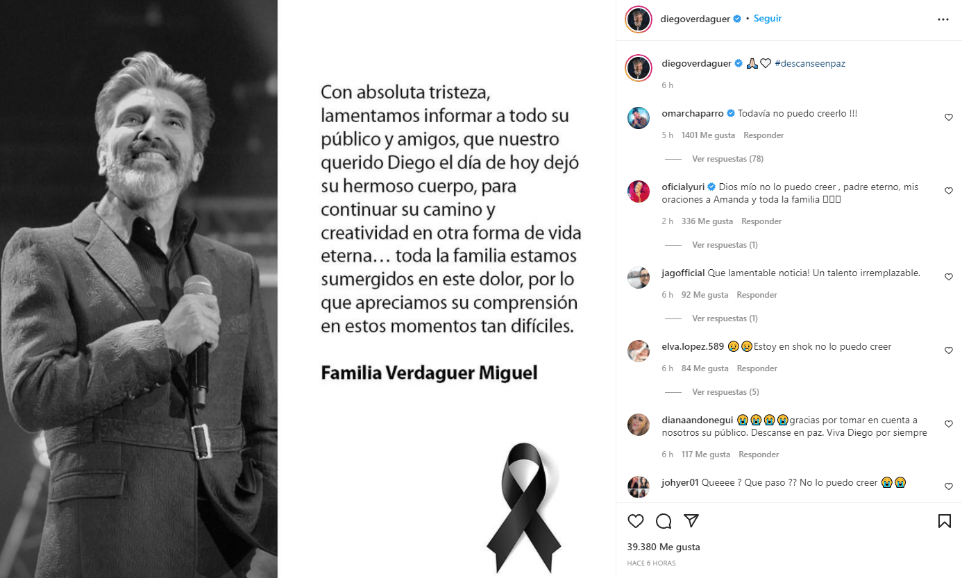 A través de la cuenta oficial de Instagram del cantante se conococió de la triste noticia. Su hija Ana Victoria también se pronunció mediante un comunicado: