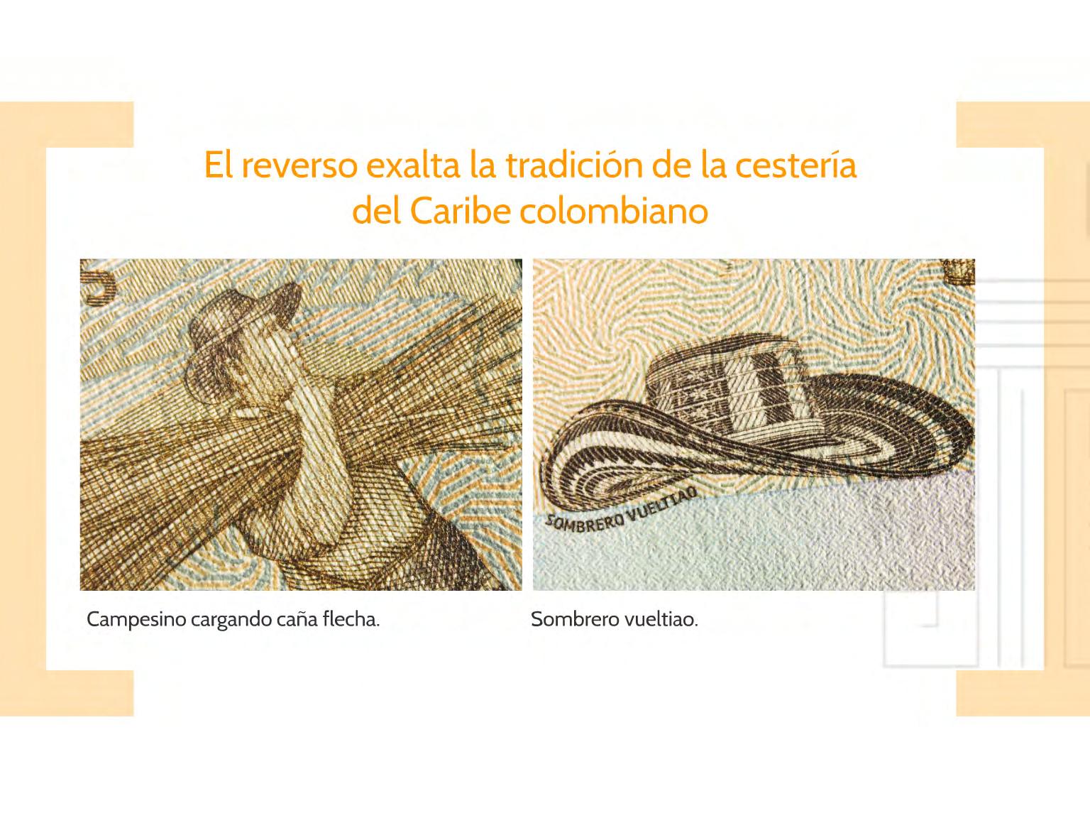 El retrato del mandatario, los canales de La Mojana sucreña, el fruto del anón, la orejera zenú y el sombrero vueltiao hacen parte de las imágenes de billete, que circulará simultáneamente con el actual (el azul con el retrato del astrónomo Julio Garavito).