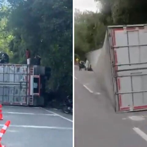 Camión se volcó en la vía La Vega-Villeta y transeúntes robaron la mercancía en pleno plan retorno Un camión proveniente de Cartagena se volcó en el sector Tobia de la vía La Vega-Villeta;