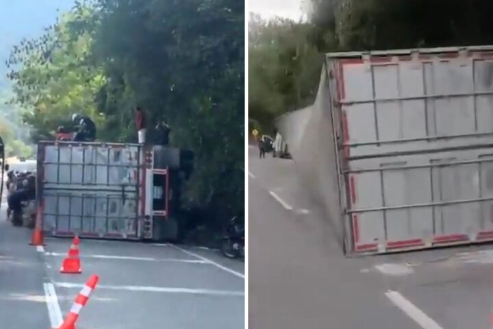 Camión se volcó en la vía La Vega-Villeta y transeúntes robaron la mercancía en pleno plan retorno