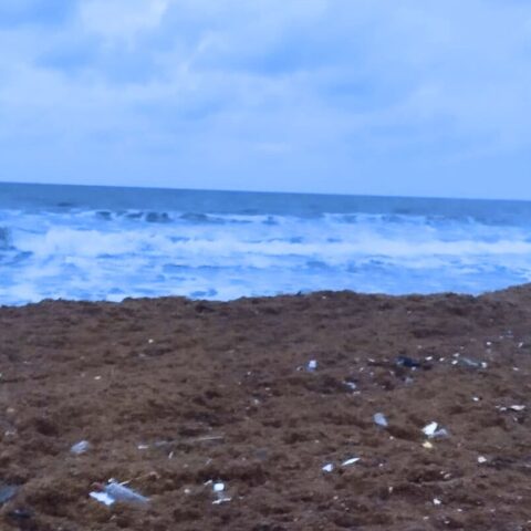 Fenómeno natural cubre de algas marinas playas de Moñitos