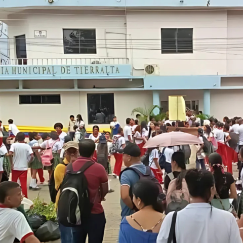 Estudiantes protestaron ante la alcaldía de Tierralta exigiendo soluciones ante infraestructura en ruinas