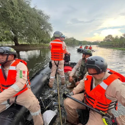 El contingente utilizó tecnología especializada para este tipo de emergencias: botes tipo Zodiac diseñados para navegación