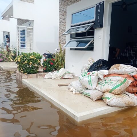 Familias bloquean entradas con sacos de arena y evacúan enseres ante filtraciones del humedal de Berlín.