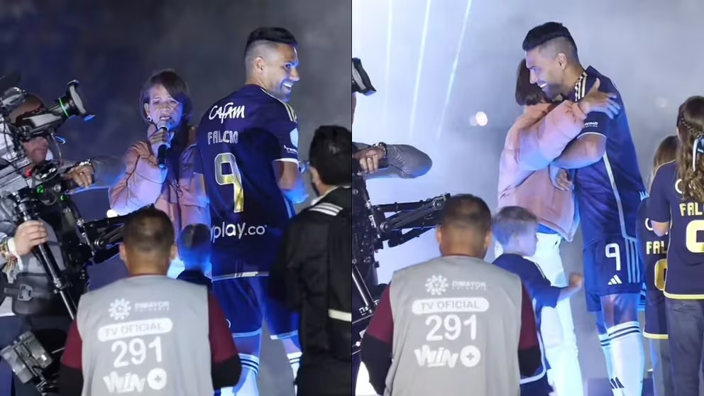 Nación “Viva Colombia; Viva Falcao”: Alexy Hernández conoció y le cantó su canción al ‘Tigre’ Alexy y Falcao se dieron un abrazo mientras la multitud aplaudía y coreaba la canción