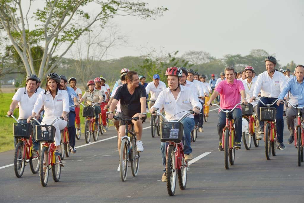 Montería. El Presidente de la República, Juan Manuel Santos, recorrió este sábado en bicicleta, junto