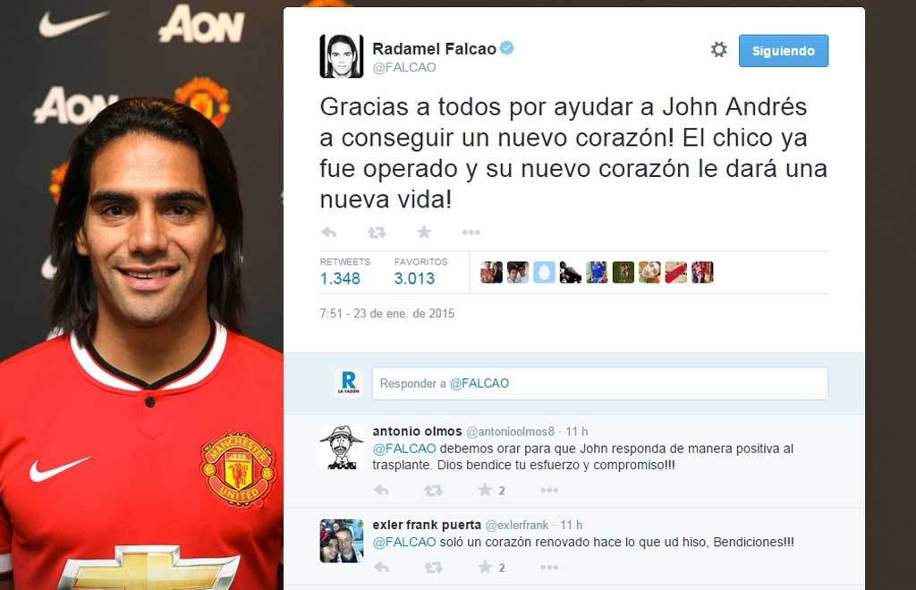 Murió el niño al que Falcao ayudó a conseguir un nuevo corazón Nación. John Andrés Uyaban, de 15 años, no resistió la cirugía con la que le realizaron