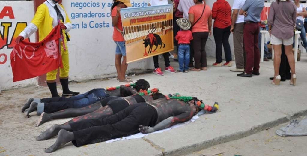 Región En Sincelejo protestan contra las corridas de toros Sucre /Sincelejo. En las afueras de la plaza de toros Héctor José, en Sincelejo, el